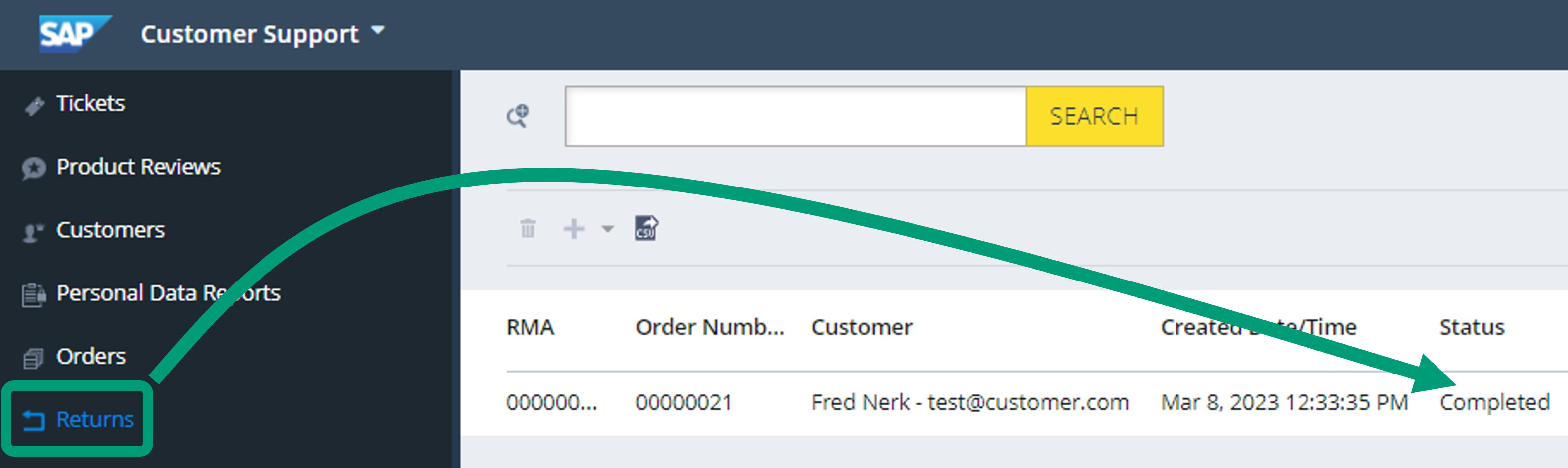 If successful, you will be displayed a success message and a new return entry will be added to the “Returns” page (with the Status “COMPLETED”). The “Total Refunded” amount for the order is also updated to reflect the refund processed.
