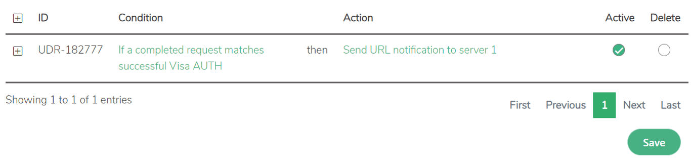 When a rule is added successfully, this is confirmed with a green success message displayed at the top of the page and the on-screen table will update to show the new rule: