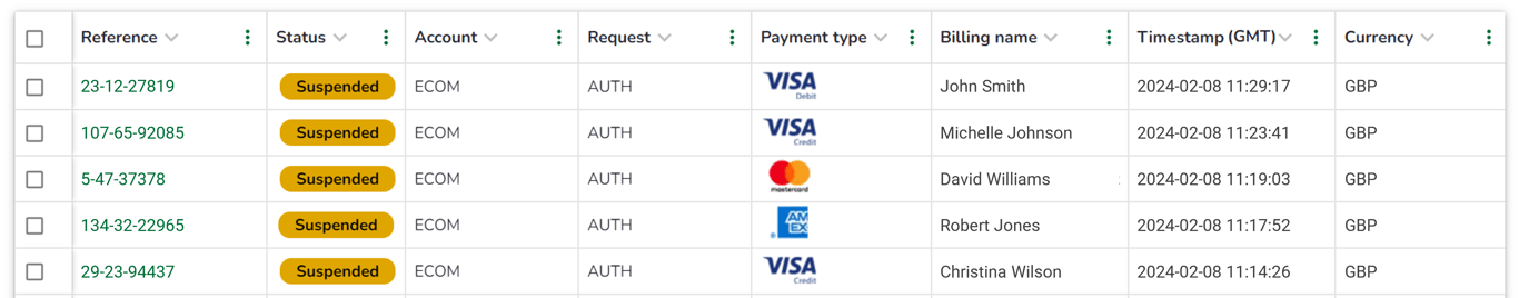Learn more: Why transactions are suspended Actioning suspended transactions