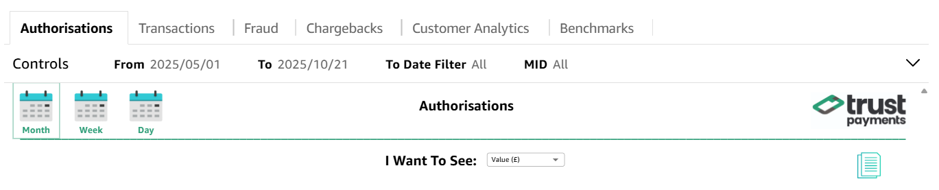 - Authorisations - Payment approval rates, decline patterns, and transaction locations for understanding your payment performance.