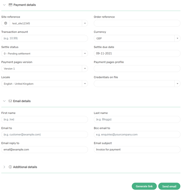 This section is only applicable when opting to have Trust Payments email the payment link directly to the customer, rather than generating a link for you to send manually.