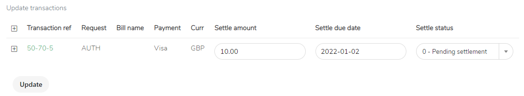 • Updating the Settle status to “3” to cancel a transaction (Caution: This step is final and cannot be reversed).