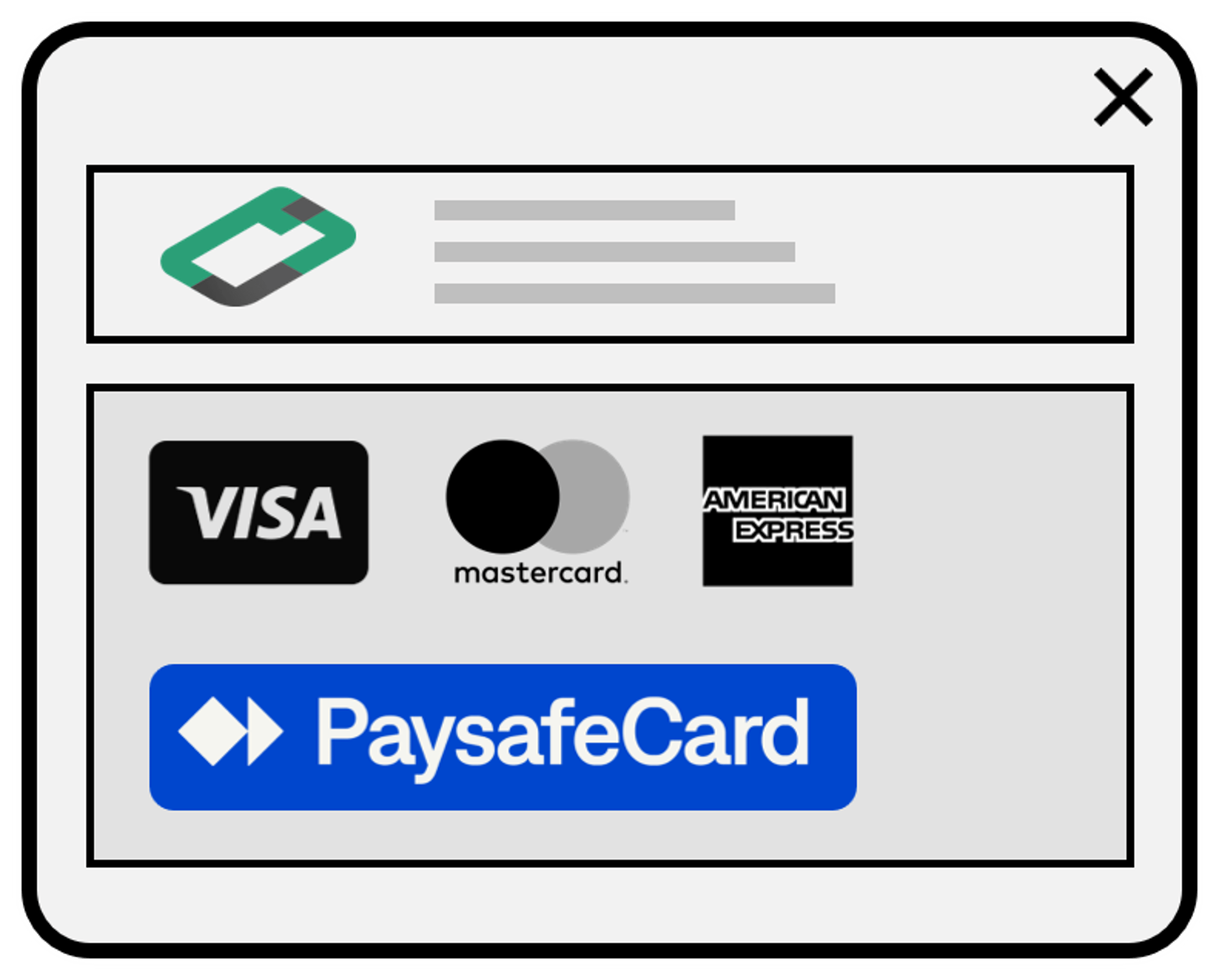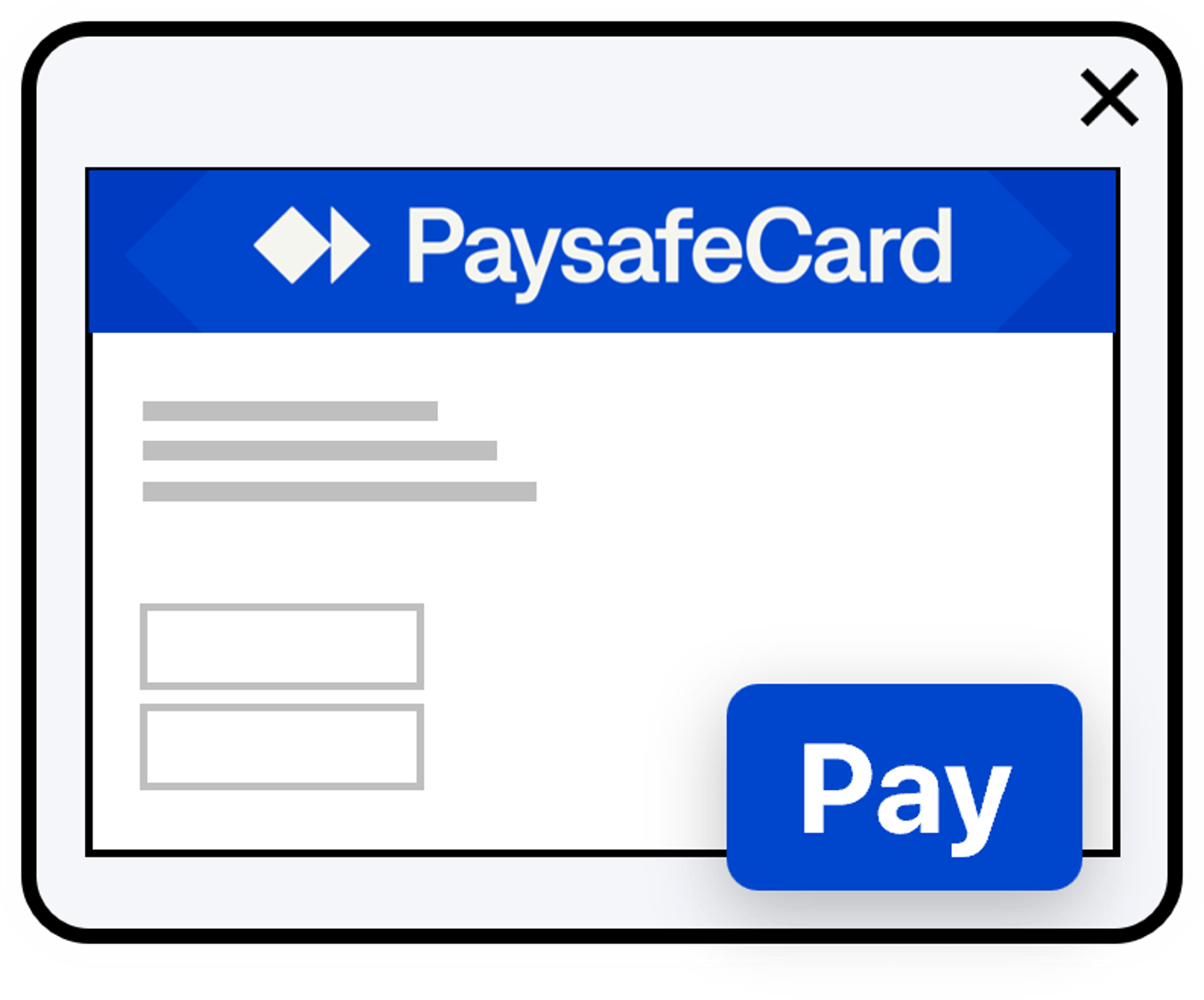 A PaysafeCard is a pre-paid voucher, issued by the payments company PaySafe, that can be purchased by your customers from sales outlets worldwide (e.g. at PayPoint outlets). Each voucher is identified by a unique PIN. PaysafeCard is particularly popular in online gaming, streaming and digital service sectors.