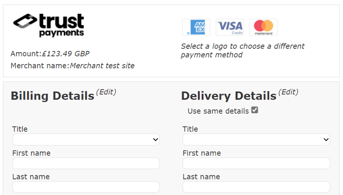 The customer needs to click “Pay Securely” again in order to make the payment with the card type associated with the previously submitted details. They can amend their address and payment details before paying, or opt to pay using a different payment type by choosing an alternative from the top of the page.
