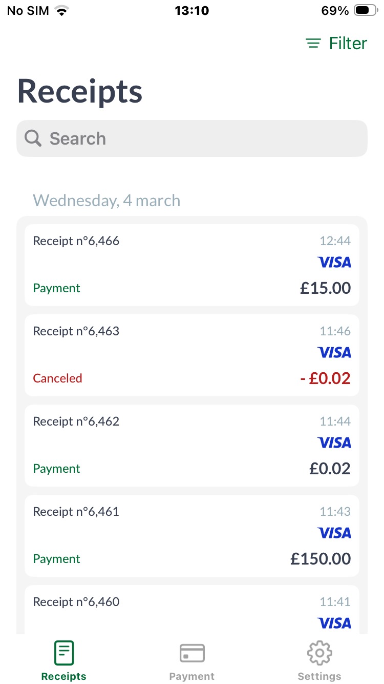 You can also filter this view to show / exclude certain types of transactions (e.g. refunds) by tapping "Filter" in the top right and choosing from the options available.