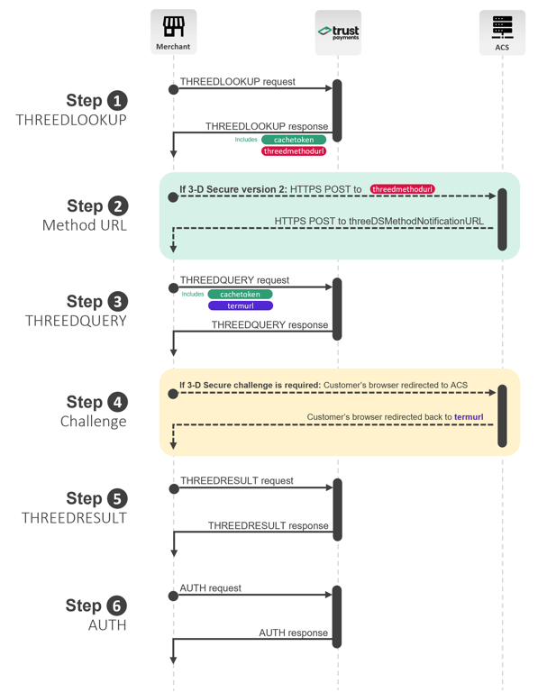 - cachetoken, returned in step 1 (THREEDLOOKUP).