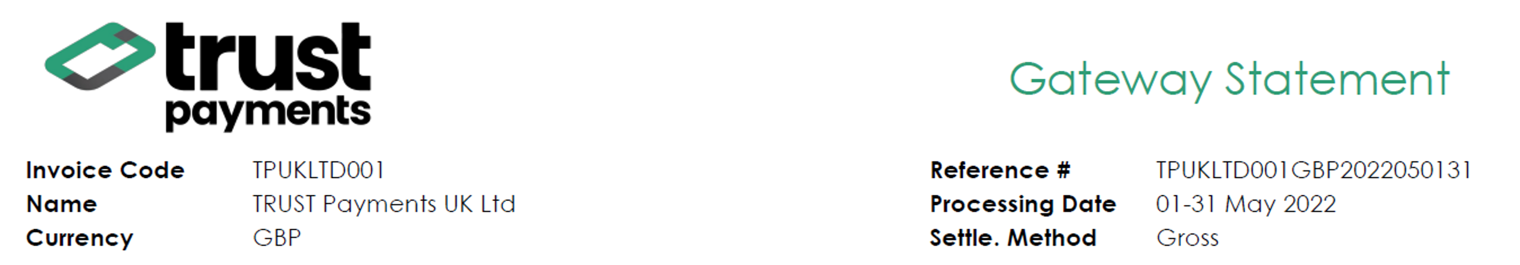 The gateway statement is only issued monthly and it is always settled using the "Gross" method.