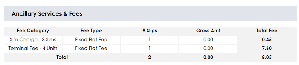This section includes any other fee for the given site reference that does not fall under the Processing Breakdown grouping shown above. The miscellaneous nature of these fees mean they can vary depending on your account configuration.